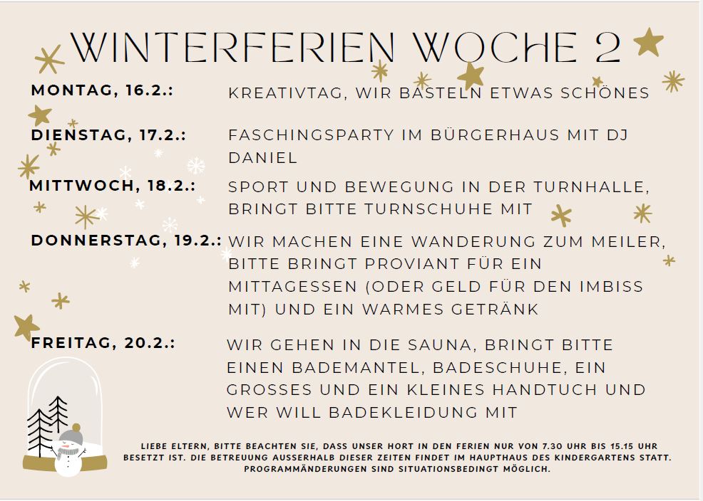 Kinderkrippengruppen für Kinder ab 1 Jahr, mit Ausnahmegenehmigung und bei freier Kapazität können auch jüngere Kinder betreut werden. Altersgemischte Kindergartengruppen für Kinder ab 2,5 Jahre.